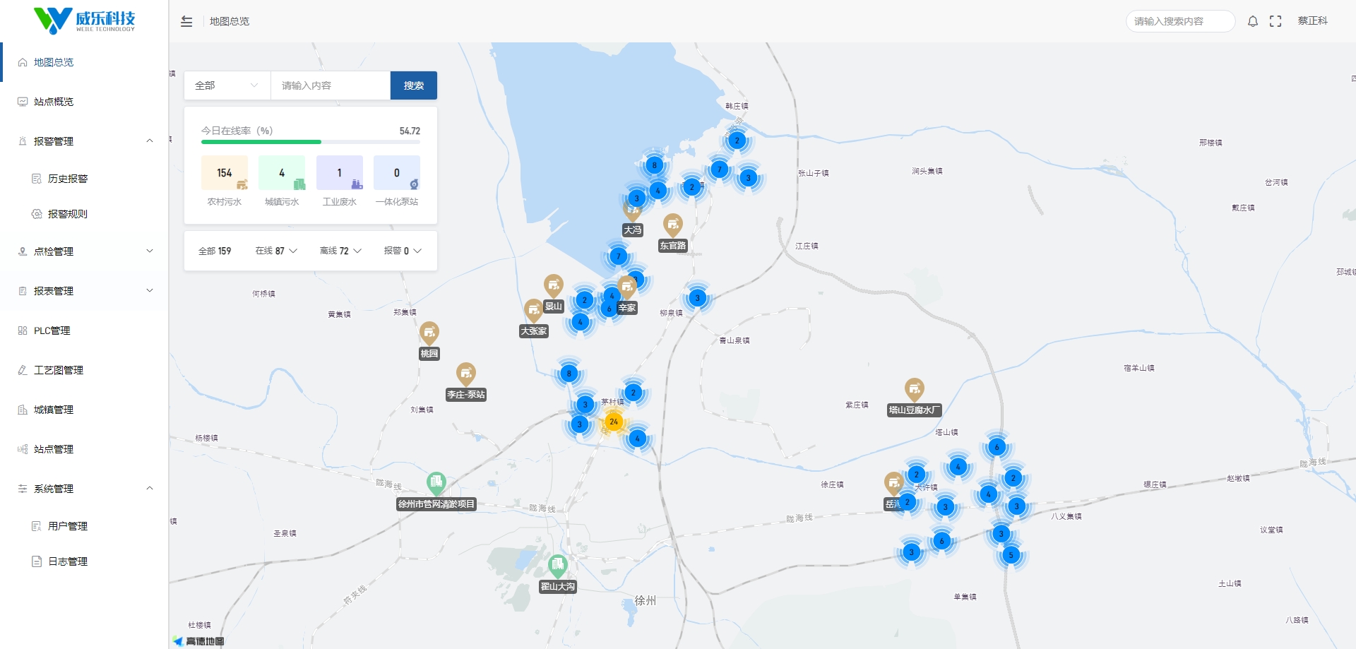 對污水站點實現遠程監控和集中管理,對現場設備設施及工藝流程中的真實運行數據采集及專業分析。以表格、餅狀圖等可視化的方式展現,實現在調度中心掌握現場實時運行數據,建設一體化的智慧信息平臺,幫助企業管理者對現場的監管,快速對突發情況做出決策,合理調配資源。